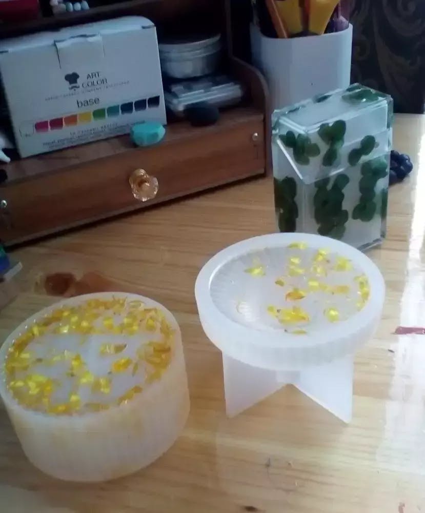 La résine époxy transparente à cristaux liquides de qualité supérieure et le durcisseur créent de magnifiques objets semblables à du verre. Des additifs innovants empêchent l'apparition de bulles et protègent du jaunissement dans le temps. Populaire pour le bricolage, les dessus de table, le moulage, les sous-verres, la vaisselle, les planches et les bijoux.