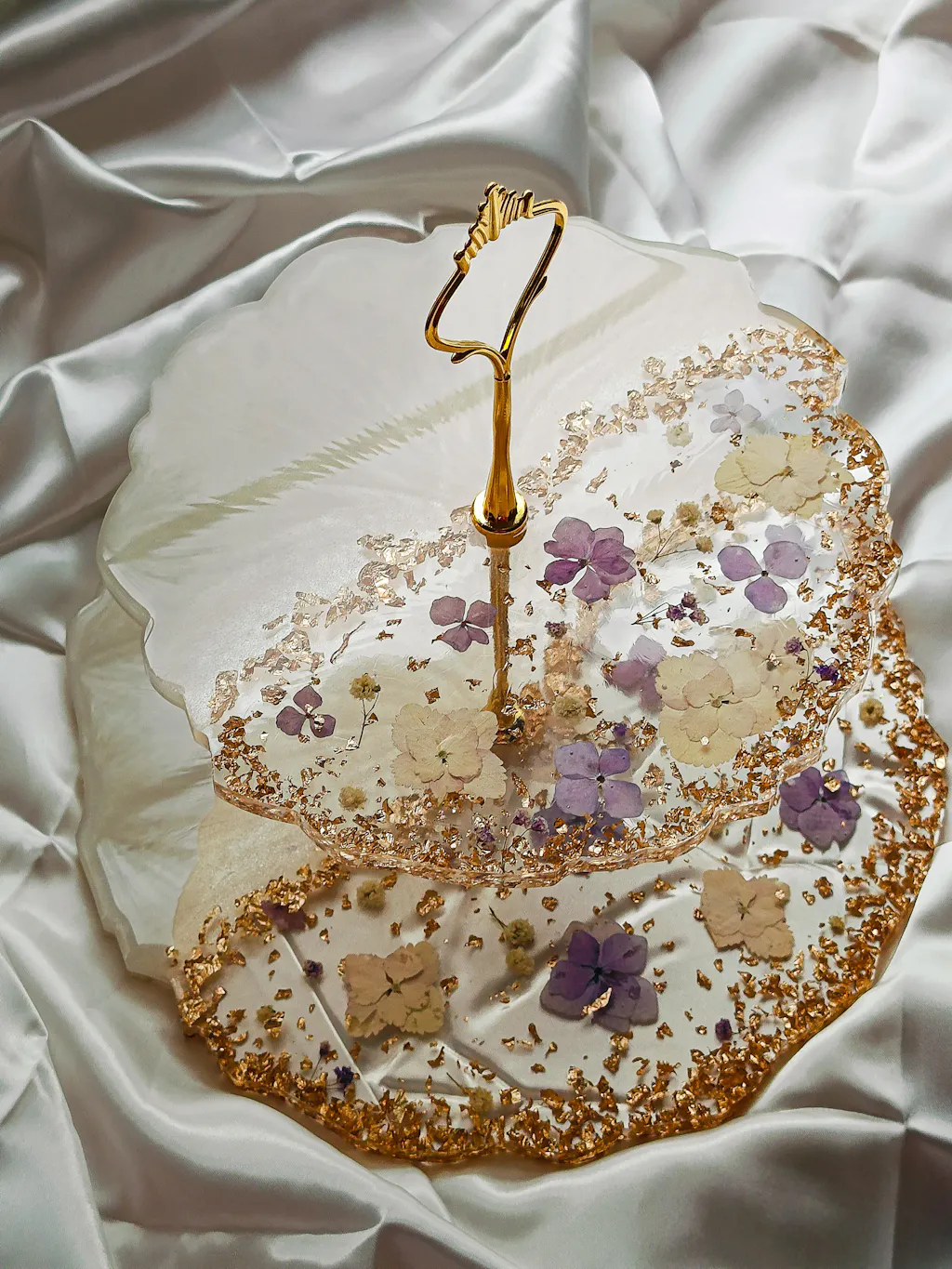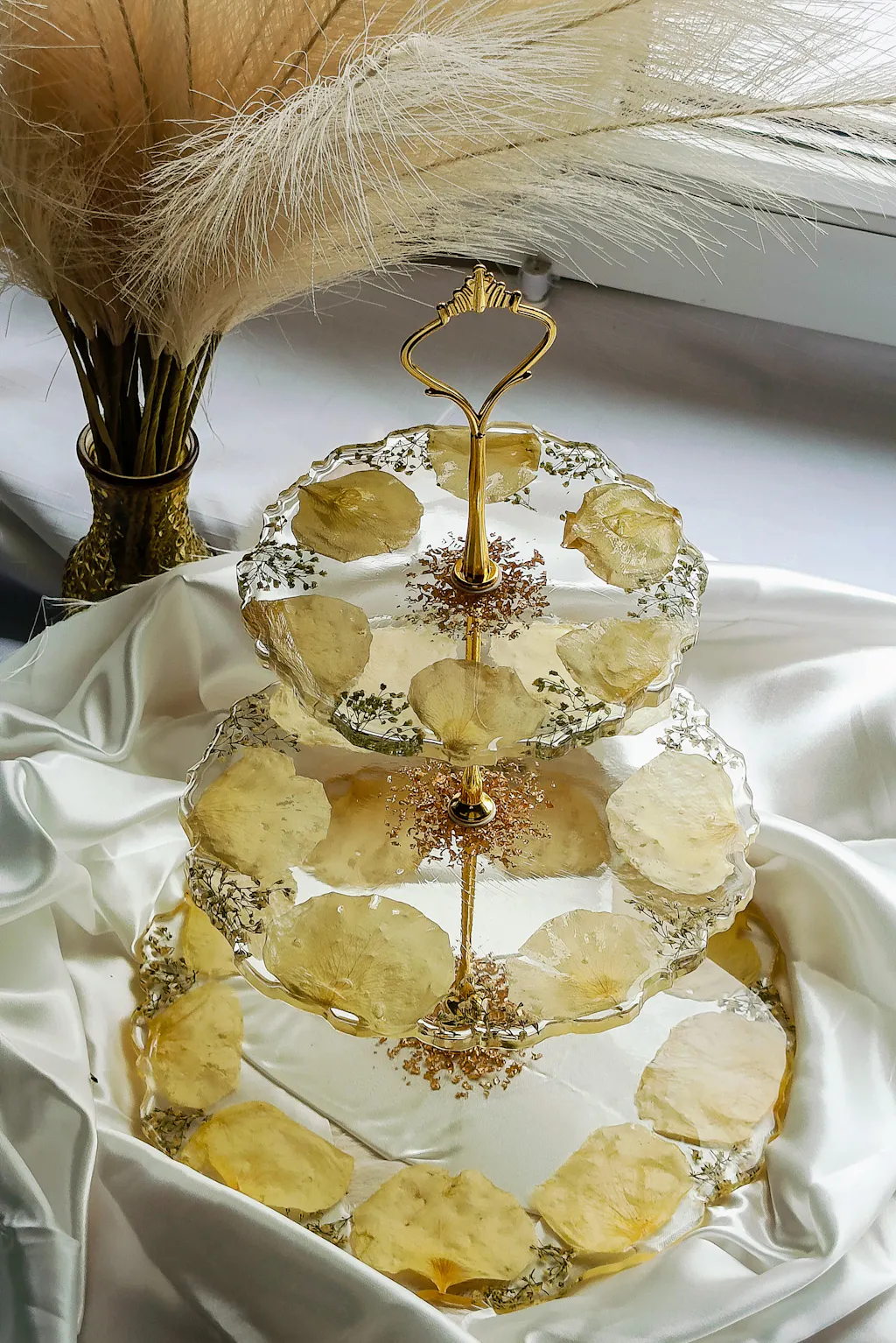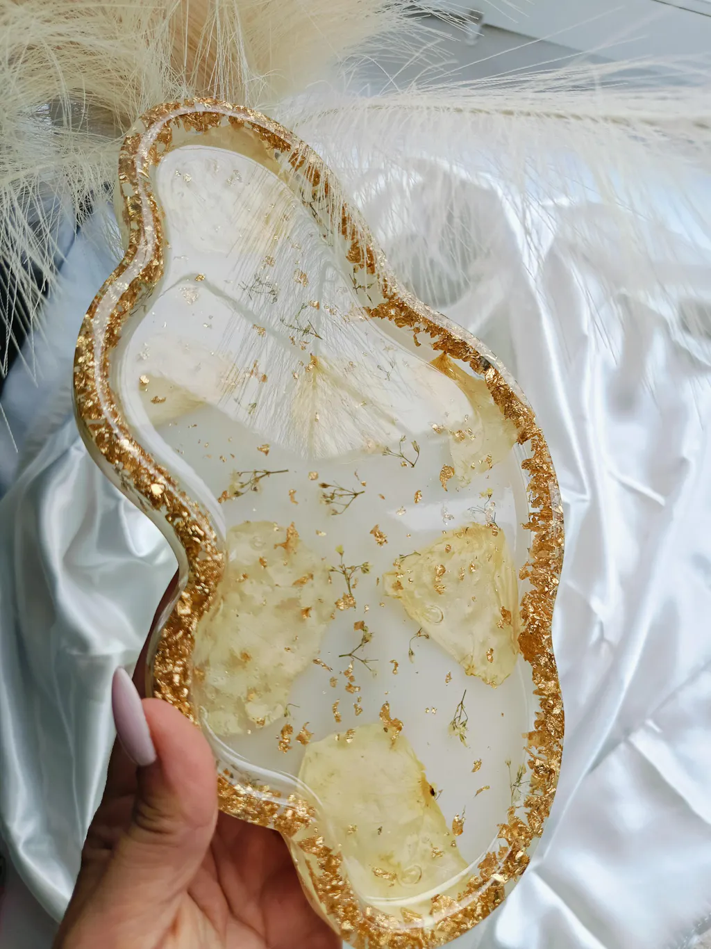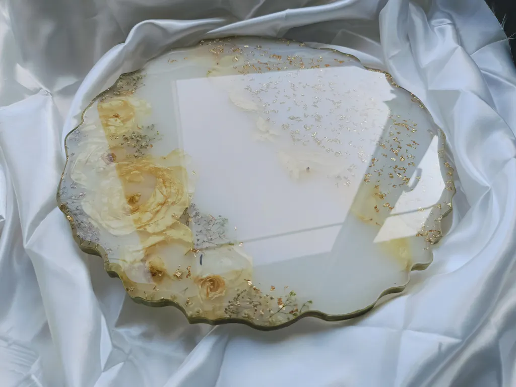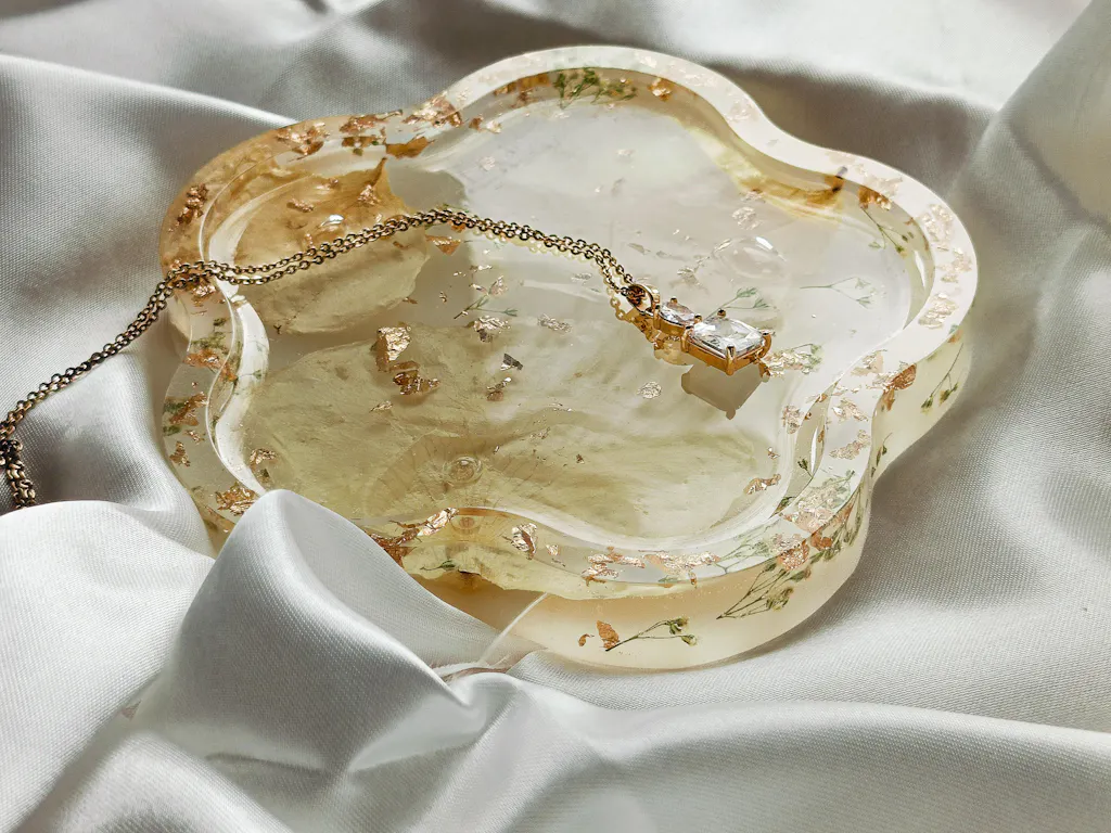 Transparent epoxy resin tray with dried flowers made from Artline Crystal Epoxy Resin