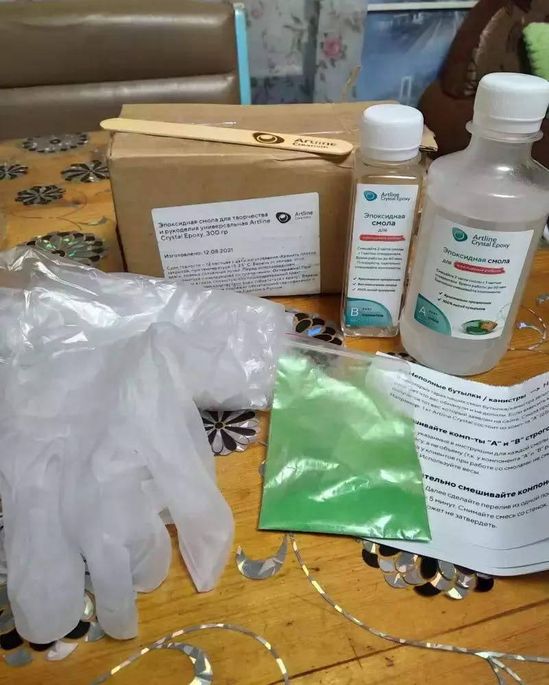 I'm just delighted. I've tried resins from other companies, but this one is perfect. Very comfortable to use, no bubbles! It came in a cardboard box, and they included pearlescent pigment as a gift.