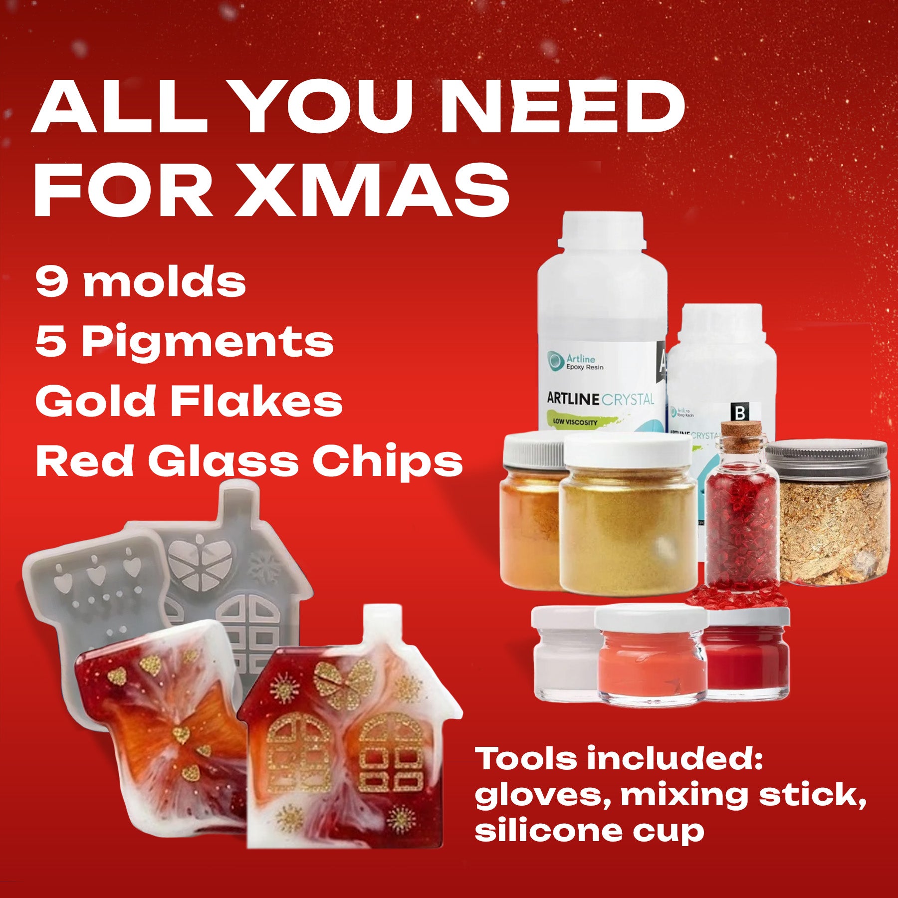 Red Velvet Christmas Limited Edition Resin Kit je za ustvarjalce, ki želijo okraske, ki so luksuzni in drzni: globoke praznične rdečine, mehki zimski poudarki, zlati detajli in teksturirani rdeči stekleni koščki, ki ujamejo svetlobo kot majhni praznični dragulji.