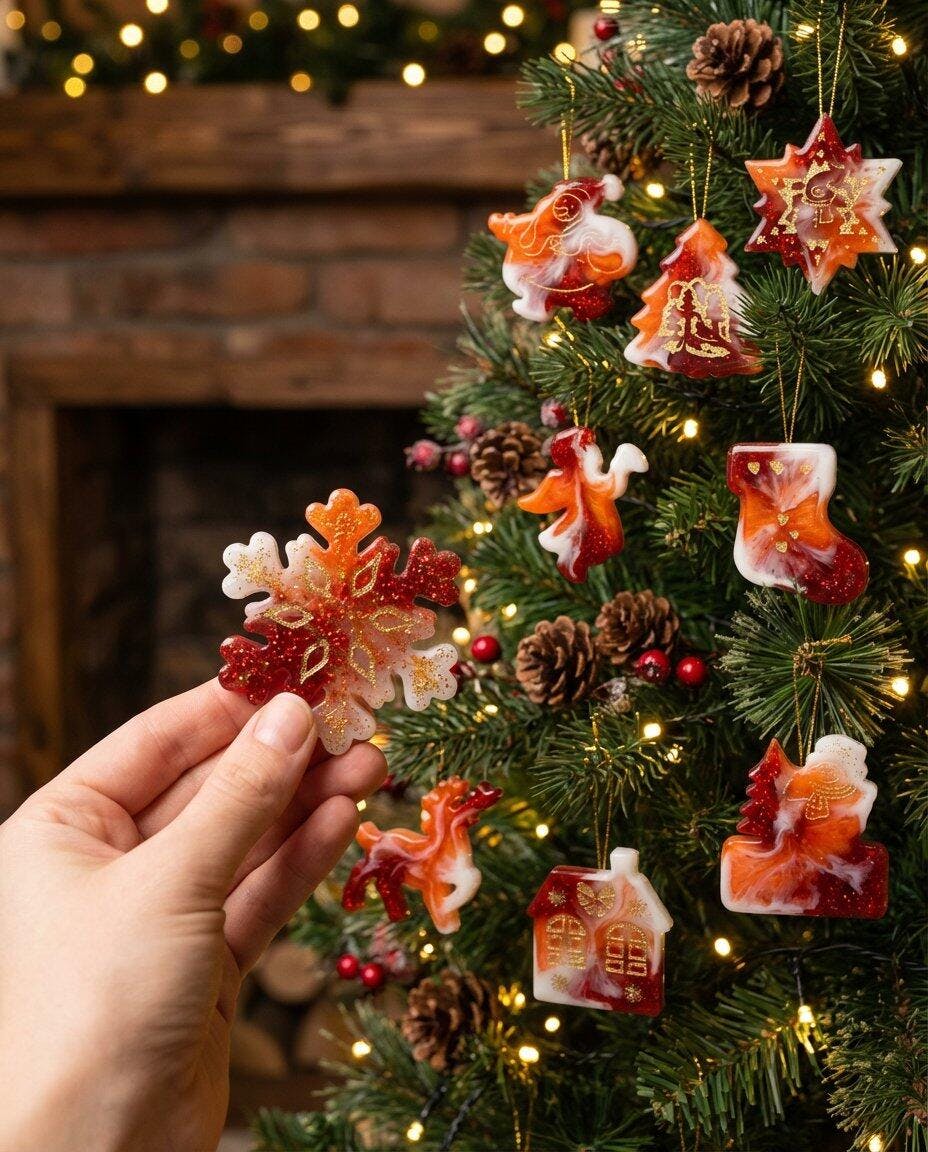 Predstavljajte si to: praznične luči so prižgane, prostor je topel, vi pa vlivate smolo, ki izgleda kot žametno rdeča pentlja z zlatimi iskrami in teksturo draguljev.